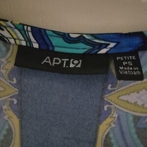 Like new-Elegant blue patterned dress perfect for any occasion. Features intricate designs for a stylish look. Smoke free home.