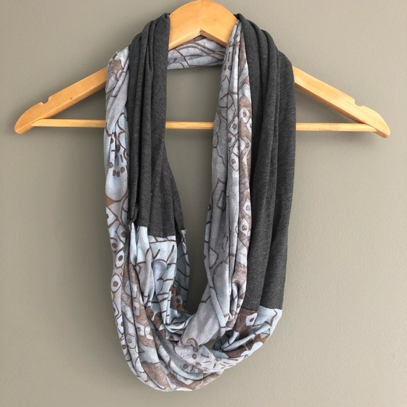 Blue and grey patterned infinity scarf - tag is cut off.