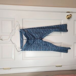 Stylish leggings with a blue pattern. Perfect for workouts or casual wear.