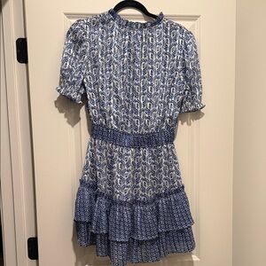 Step out in style with this chic blue patterned mini dress. Perfect for any occasion, it offers a flattering fit and eye-catching design.