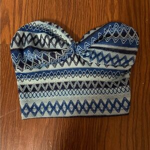 Blue Patterned Strapless Top