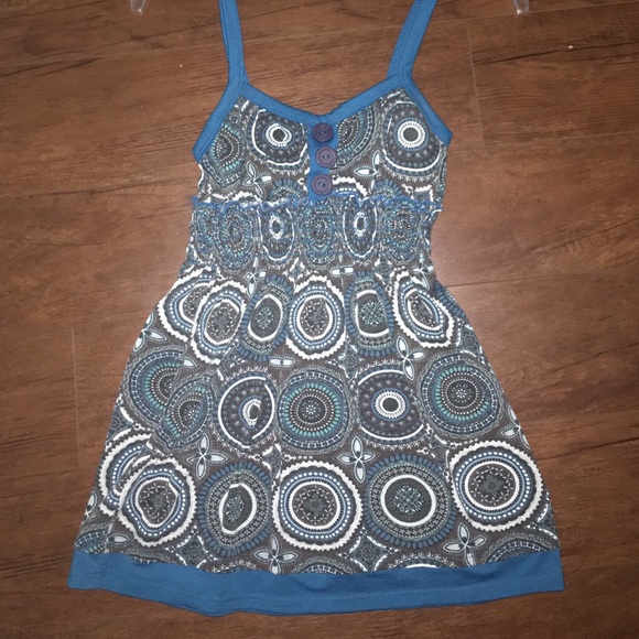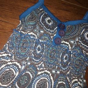 Type: Tribal-like pattern tank top Color: Blue and Brown Size: S