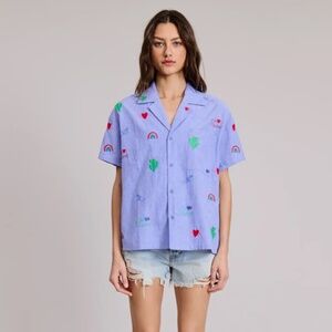 Stylish blue women’s top featuring vibrant patterns. Perfect for casual outings.