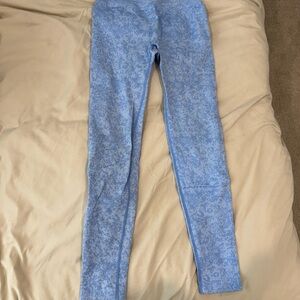 Stylish blue leggings with a subtle pattern. Perfect for casual wear or workouts.