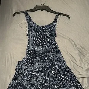 Stylish blue dress with intricate patterns. Sleeveless design. Perfect for casual outings.