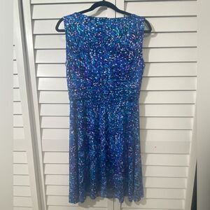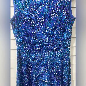 This vibrant blue sleeveless dress features a stunning pattern, perfect for any occasion. Its elegant design and comfortable fit make it a must-have addition to your wardrobe.
