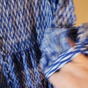 Elevate your wardrobe with this stylish blue patterned top. Perfect for any occasion, this top offers both comfort and elegance. ptp 17 length 29. layered