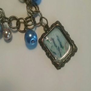 Blue Pearl Charm Bracelet with Custom Art