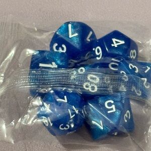 This is a 7 piece polyhedral dice set for dungeon and dragons, pathfinder, or other TTRPG games. Still in packaging.