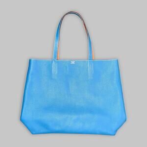 Blue Pebbled Leather Tote Bag – Hermès-Inspired Style (Not Authenticated)