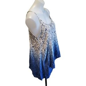 Blue Pepper Sleeveless Tank Blouse Boho Blue White Ombre Floral Print Sz Med
