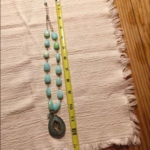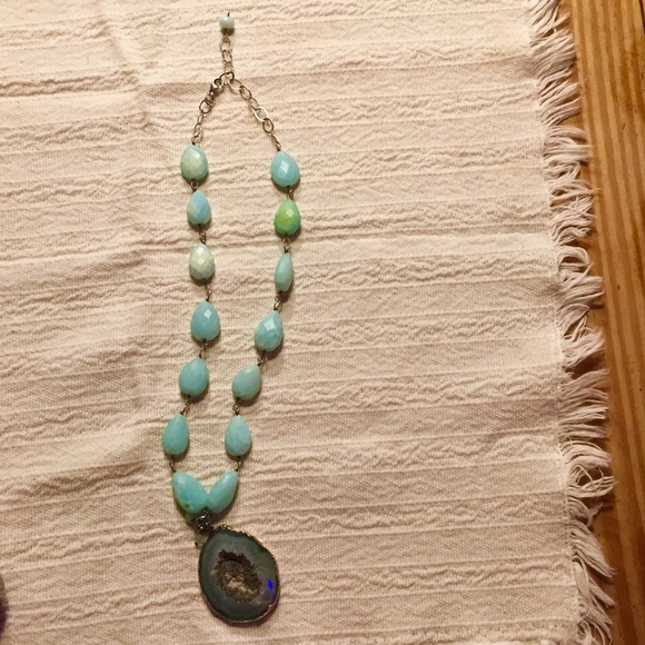 14 ice blue Peruvian opals 3/4" each with 1 1/2" blue green sparkling geode, handmade by famous jeweler in San Luis Obispo, 20" end to end