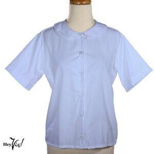 Blue Peter Pan Collar Short Sleeve Blouse Button Up Poly Cotton Adult Size Large