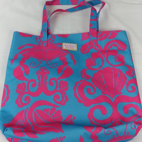 Lilly Pulitzer for Estee Lauder Tote Bag Shopper Blue Pink Beach Shells, Fish, Crab - Nautical Theme. In excellent pre-owned condition. Looks new.