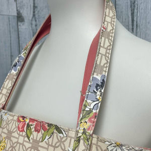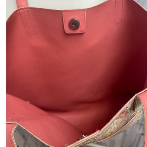 Blue Pink Daisy Flower Floral Trellis Vinyl Double Handle Tote Bag Handbag Purse