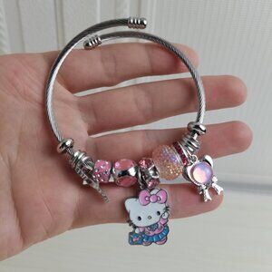Hello Kitty Charm Pendant Blue & Pink Tone Bangle Bracelet