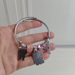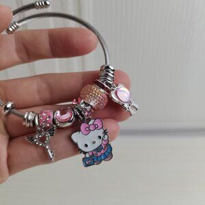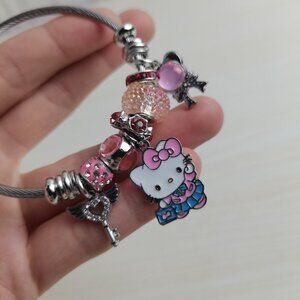 Blue & Pink Hello Kitty Charm Pendant Tone Bangle Bracelet
