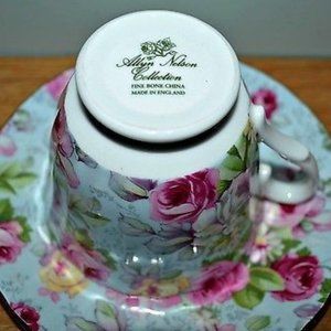 Blue Pink Roses CHINZ China Tea Cup + Saucer Allyn Nelson Collection England