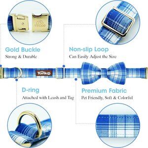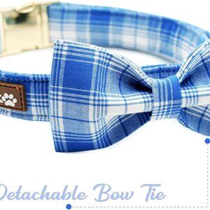 Blue Plaid Dog Collar with Bow Tie - Fashionable Spring Summer Checkered Dog Col