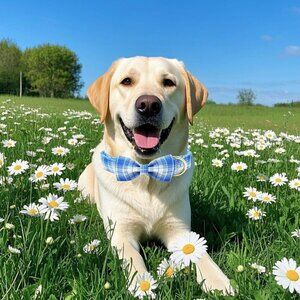 Chic Blue Checkered Design: Show off your pet's unique style with this trendy blue checkered pattern. The classic design is suitable for all seasons and occasions, making your furry friend stand out in the crowd. Paired with a carefully designed, matching bow, it adds an extra dash of charm to your pet's look.
