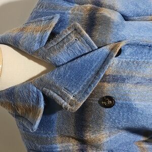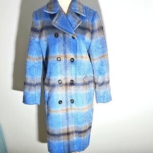Blue Plaid Double-Breasted Women's Coat. NWOT So Soft. Size Large Petite.