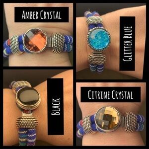 These are so trendy and super comfortable to wear! I have several bracelet options to post that will be available. This is the blue plaid option. I have pulled 26 options of snap buttons of which you may choose 2. Please indication which 2 in the comments section or via bundle option. The price is firm for this item. Bracelet + 2 interchangeable snaps.