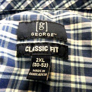 This is a button up blue plaid shirt by George. It is a classic fit size 2XL.