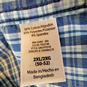 Blue Plaid Shirt Western Cowboy Buttons Short Sleeve George 2XL