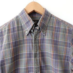 DUNHILL LONDON Blue Plaid Tartan Shirt Men SmallCotton Button Down Tailored Fit