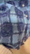 Stylish blue plaid button-up shirt with a textured design. Features a front pocket and button details.