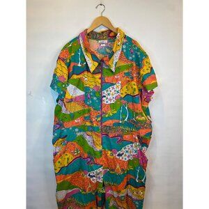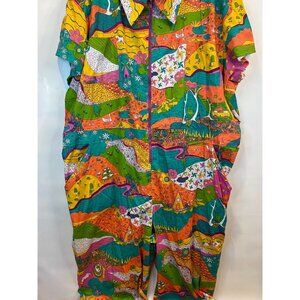 Blue Platypus Landscape Jumpsuit Women's Plus Size 4X Rainbow Farm Multicolor