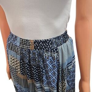 This blue midi skirt features a classic A-line silhouette with elegant pleats, perfect for a casual day out or resort wear. The skirt's flowing design offers a comfortable fit, while the pleated details add a touch of sophistication. Its versatile style makes it an ideal choice for various casual occasions.