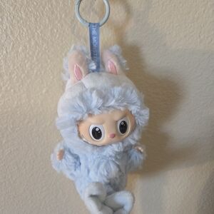 Adorable blue plush keychain accessory perfect for adding a cute touch to your bag. Features a charming design with soft textures.