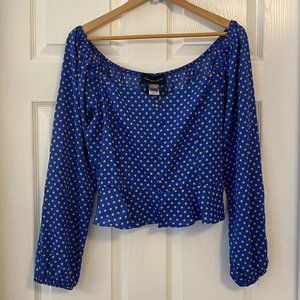 Blue Polka Dot Sweetheart Neck Peplum Long Sleeve Top - Size Large
