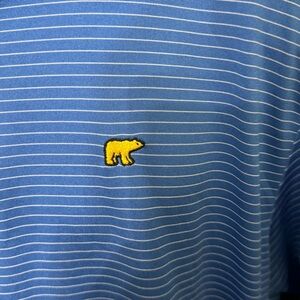 This blue polo shirt is designed with a classic collar and short sleeves, offering a timeless look. Made from a comfortable fabric, it is perfect for casual or athletic wear, featuring a small emblem on the chest for added style.