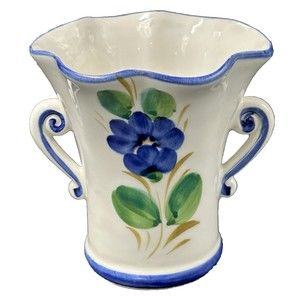 Blue Poppy Floral Ceramic Vase Hand painted in Italy for FTD 5.5 Inches Tall
