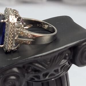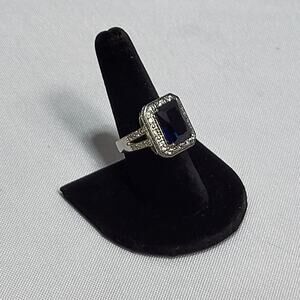 Blue Princess Cut Cabochon w Diamond chip accent 925 Sterling Silver Ring Sz 8.5