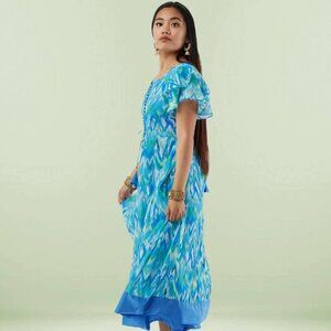 Blue Printed Chiffon Knee-Length Dress | Muvvas Boutique
