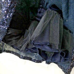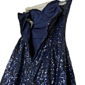 This is a B. Darlin corset dress in a sequin covered, dark blue. It is strapless, a very short Mini dress in a Lolita style.