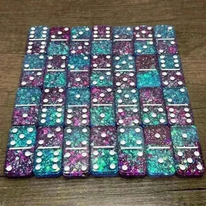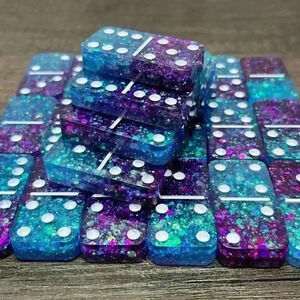 Blue & Purple Holographic Sparkle Hand Crafted 28 Piece Domino Set
