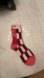 Playful crew socks with bold red and cream geometric design. Add fun to your outfit.