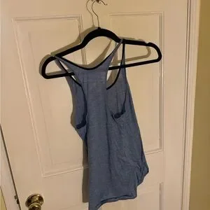 Stay cool and stylish Lulu Lemon with this blue racerback tank top. Perfect for casual outings or workouts. Yoga, exercise.