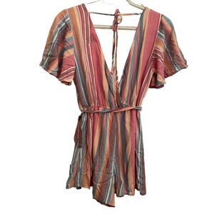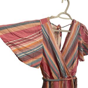 Blue Rain Amie Tie Backless Butterfly Sleeve Belted Rainbow Striped Romper Size XXS