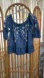 This Blue Rain blouse showcases a beautiful smocked design with 3/4 bell sleeves, offering a stylish and comfortable fit. The blue and white color palette is enhanced by delicate embellishments, making it a versatile choice for various occasions. The ruffled details add a touch of femininity to this elegant top.