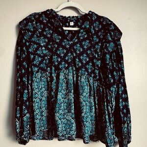 Blue Rain Bohemian Flowy Ruffle Bell Sleeve Top Size medium