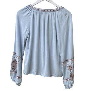 Blue Rain Boho Top XS Light Blue Embroidered Long Sleeve Blouse Rayon