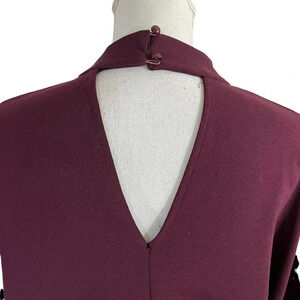 Blue Rain Burgundy Blouse Keyhole Neckline Flared Layered Ruffle Sleeves Large