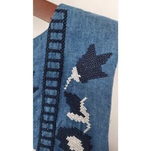 Blue Rain Chambray Embroidered Shift Mini Dress Women's XS