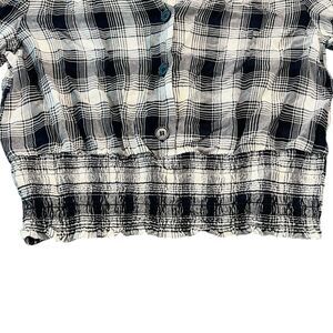 Blue Rain Crop Top L Black White Rouched Boho Y2K Grunge Punk Festival Concert