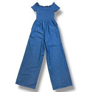 Blue Rain Denim Jumper Womens Blue Ellison Smocked Chambray Pantsuit Size S